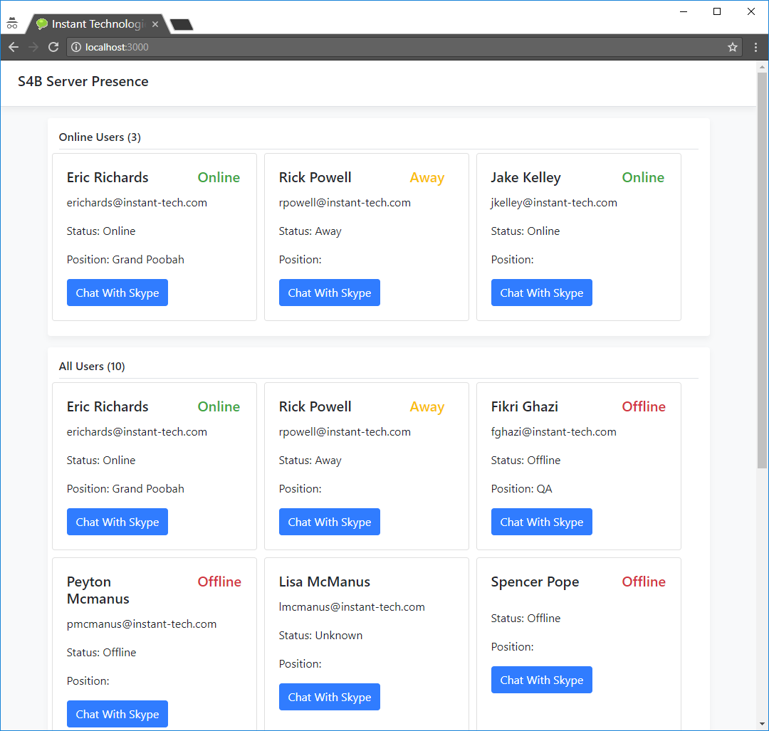 Have a question about the S4B Server Presence Application? Ask one of our developers at support@instant-tech.com.